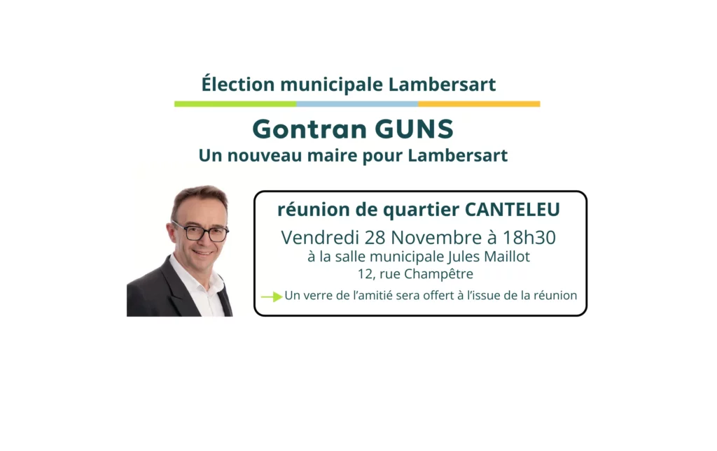 Réunion publique de quartier à CANTELEUVendredi 28 novembre, 18h30, salle Jules Maillot, rue Champêtre.Au programme :  Présentation de notre projet pour Lambersart : qualité de vie, sécurité et harmonie sociale Comment améliorer la sécurité et la propreté dans le quartier Le projet immobilier Point P – COMAR La rénovation de l’avenue de Dunkerque …  Ensemble, […]