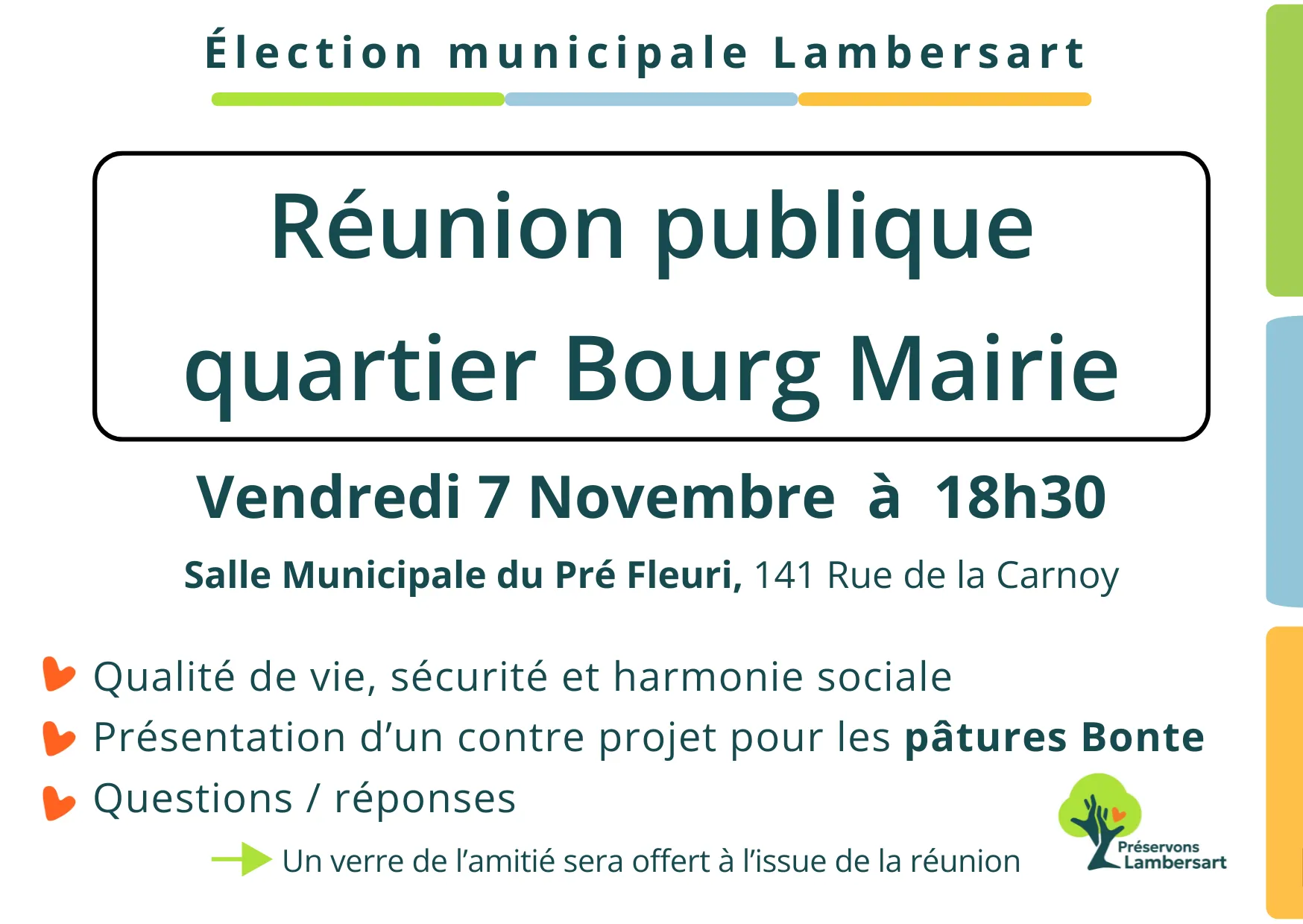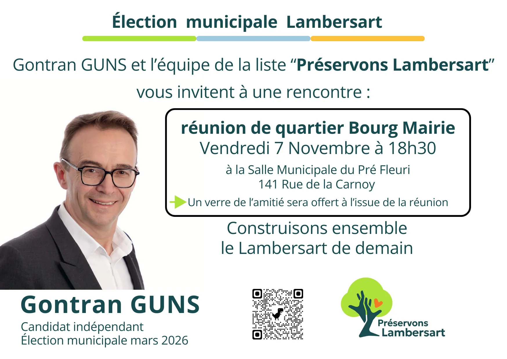 Élection municipale Lambersart - Réunion de quartier Bourg et Mairie, Vendredi 7 novembre 18h30