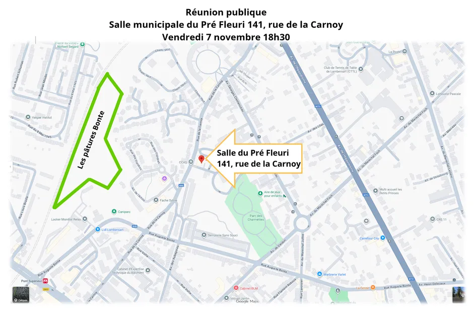 Lors de notre réunion publique, nous vous expliquerons comment et nous vous présenterons un contre-projet pour préserver les pâtures Bonte, respectueux du quartier et de sa qualité de vie.