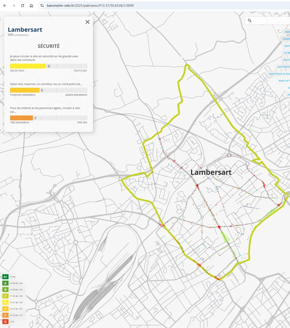 Le baromètre vélo 2025 réalisé par la Fédération Française des usagers de la bicyclette met en évidence qu'il faut améliorer la sécurité pour les enfants et les personnes âgées circulant à vélo à Lambersart